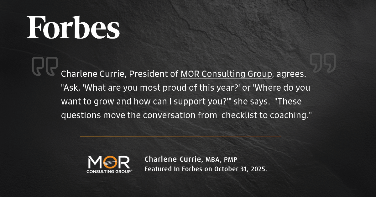 Toronto, ON - November 14, 2025 - Charlene Currie, President of MOR Consulting Group™, has been featured in Forbes for her perspectives on how organizations can elevate the effectiveness and impact of performance reviews through intentional leadership, sharper dialogue, and meaningful talent engagement.